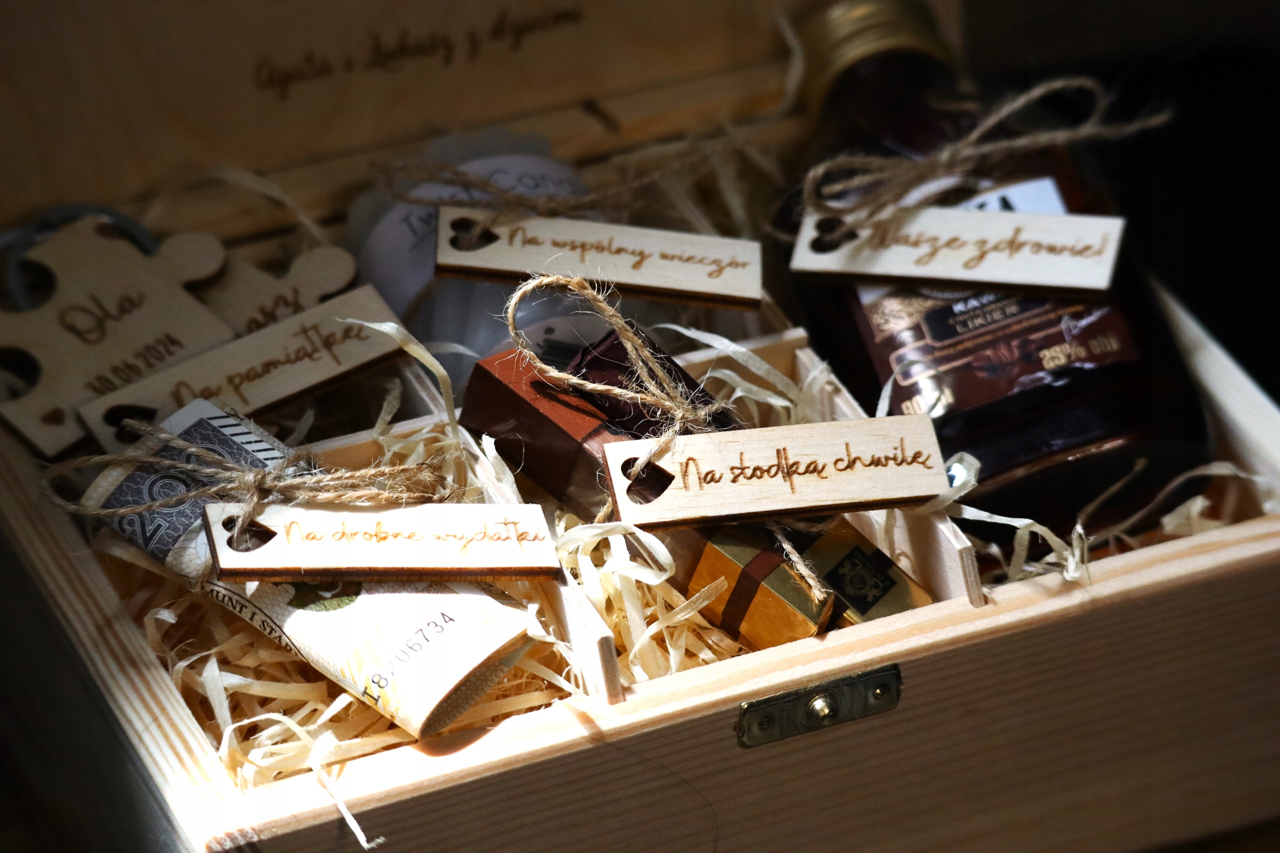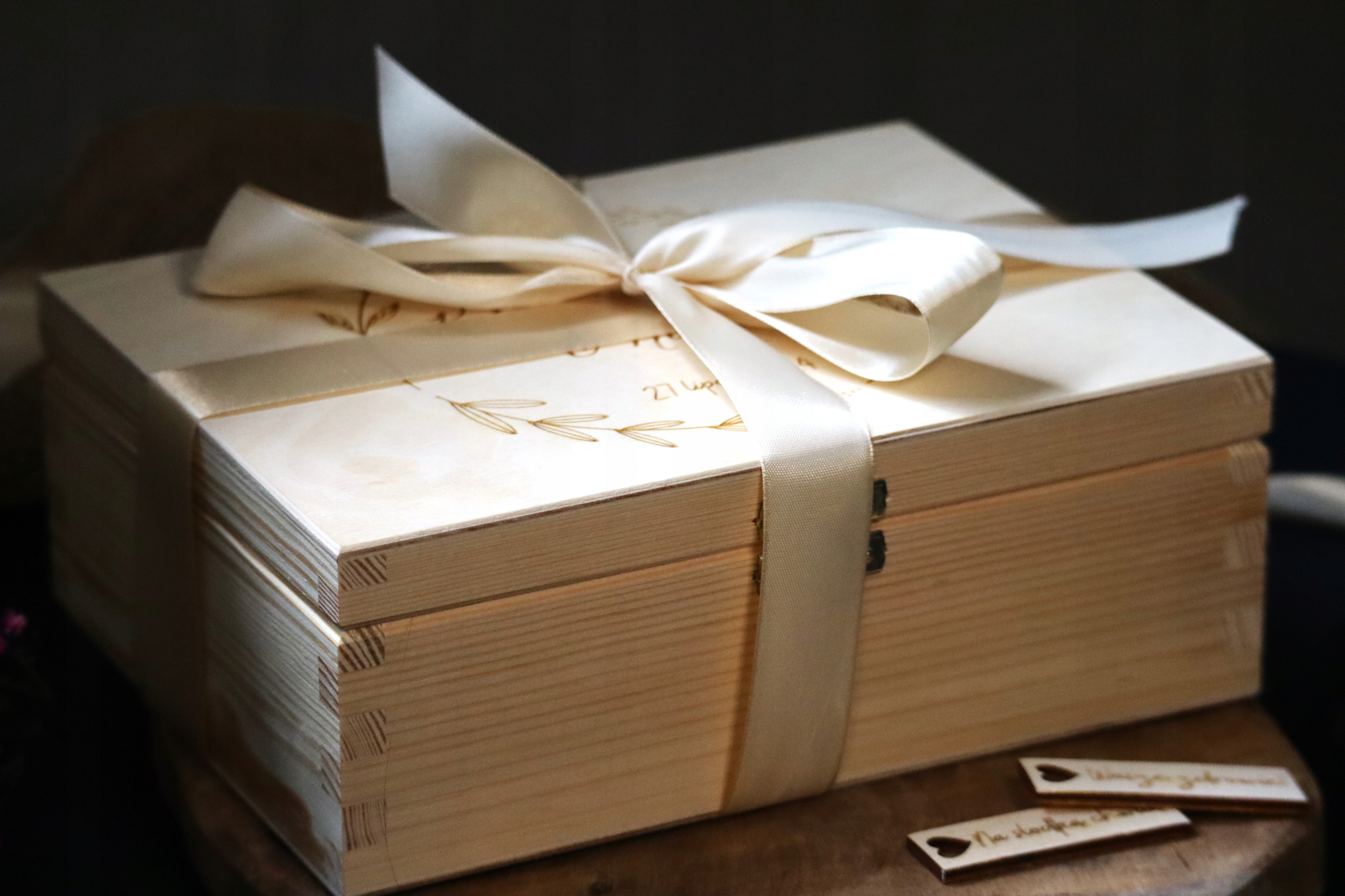 Індивідуальна подарункова коробка з відділеннями стане унікальним та оригінальним весільним сувеніром на довгі роки!