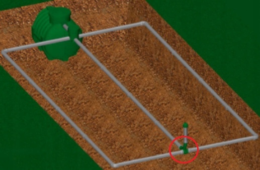 Перед засипанням а після остаточного вирівнювання - домашню очисну споруду слід «підключити», тобто підключити від виходу стічних вод з будинку до кінця дренажу. Запірний колодязь дозволяє з'єднати незалежні потоки в одне ціле: це посилює жорсткість системи і дозволяє повітрю і рідині протікати між дренажними потоками.
