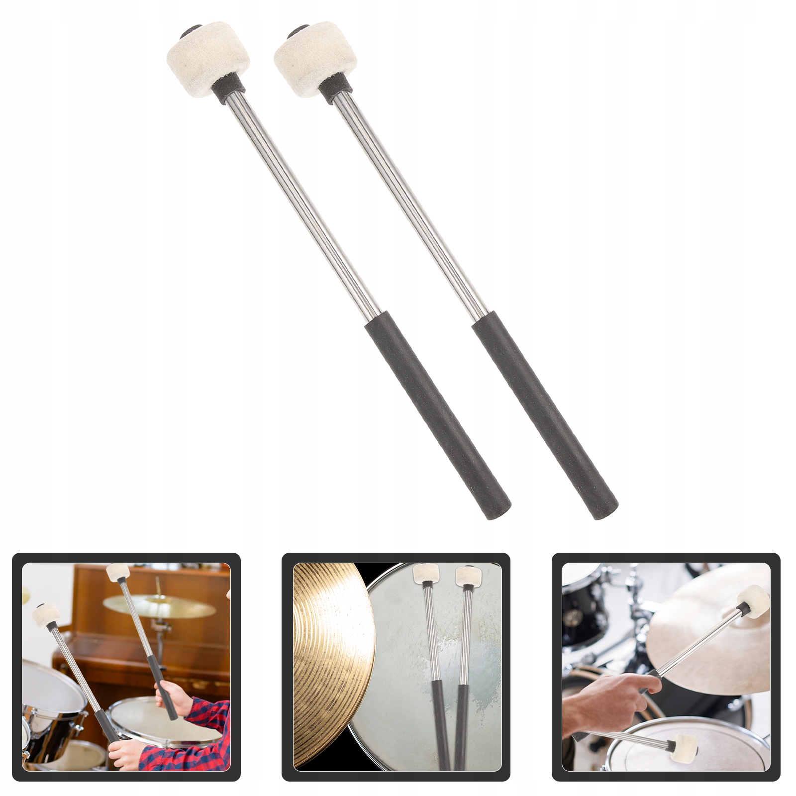 ✅Головка барабанних паличок виготовлена з повстяних матеріалів, безпечних для барабана, а ручки з нержавіючої сталі буде непросто деформувати або зламати.