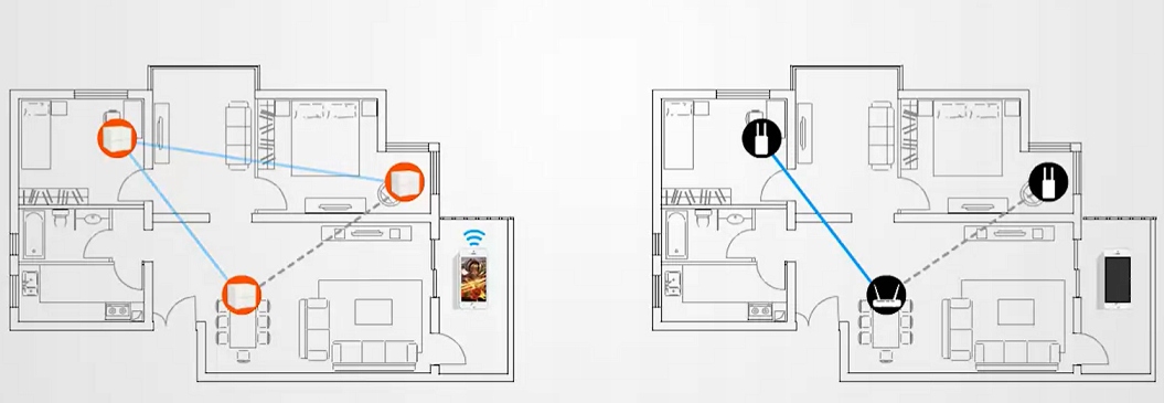 У традиційних наборах мереж після втрати з’єднання між пристроями (PowerLine, підсилювачі) ви також втрачаєте з’єднання з мережею. У системах Tenda nova втрата зв’язку між двома вузлами не призводить до відключення від мережі. Маршрутизатор просто з’єднається з іншим доступним маршрутизатором, щоб ви завжди були онлайн.