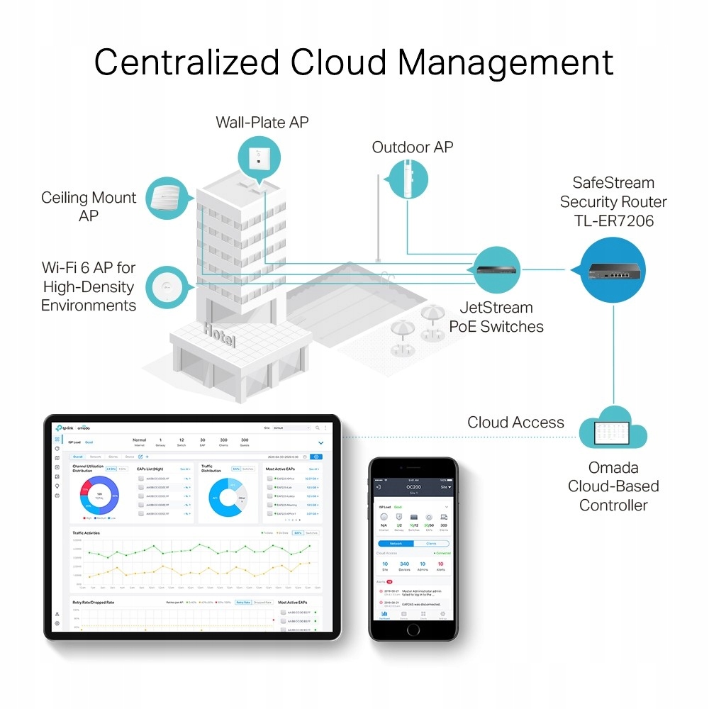 - Центральне керування: доступ до хмари та програма Omada для зручного керування.