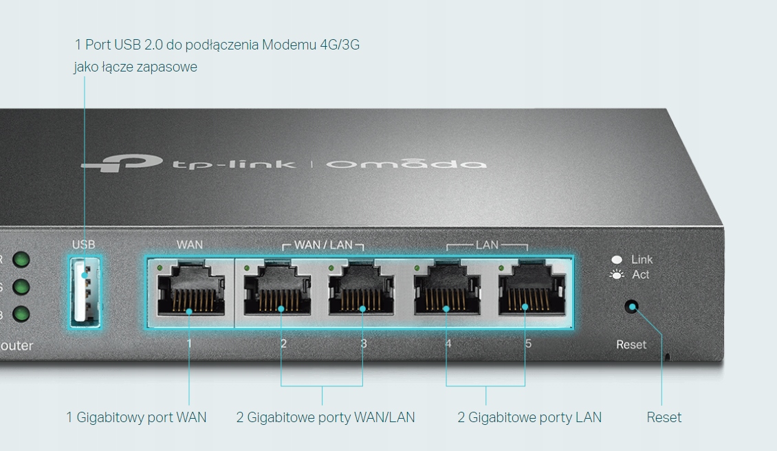 - До 3 портів Ethernet WAN: 1 гігабітний порт WAN і 2 гігабітних порти WAN/LAN із розподілом навантаження на смугу пропускання розширюють можливості використання кількох широкосмугових мереж