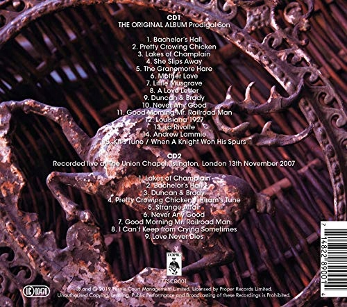 Багато хто в народному світі вважав один із найкращих альбомів Мартіна Сімпсона, Topic з гордістю представляє тут у свій 80-й рік свій перший випуск від Topic Treasures imprint, розкішні випуски класичних альбомів Topic від лейбла. Цей реліз є класичним альбомом у всій його красі разом із бонусним диском живих треків, підібраних самим Мартіном Сімпсоном. Спочатку випущений у 2007 році, Prodigal Son був визнаний класикою, отримавши 4- та 5-зіркові рецензії в таких виданнях, як The Sunday Times, The Guardian, Daily Express і Observer, тоді як видання Folk, такі як fRoots, захоплювалися його дивом! Такі треки, як «Duncan & Brady», американська балада, спочатку записана Лідбеллі, і «Good Morning Mr. Railroad Man чітко вказує на любов Мартіна Сімпсона до традиційної американської кореневої музики, а чудовий трек Ренді Ньюмана «Louisiana 1927» заглиблюється в територію історичних подій. Одним із видатних треків, якщо такий є на цьому високоякісному альбомі, є «Never Any Good», пісня про стосунки Батька та сина. По правді кажучи, весь альбом – це справжній tour de force і чудова робота одного з найкращих гітаристів у світі.