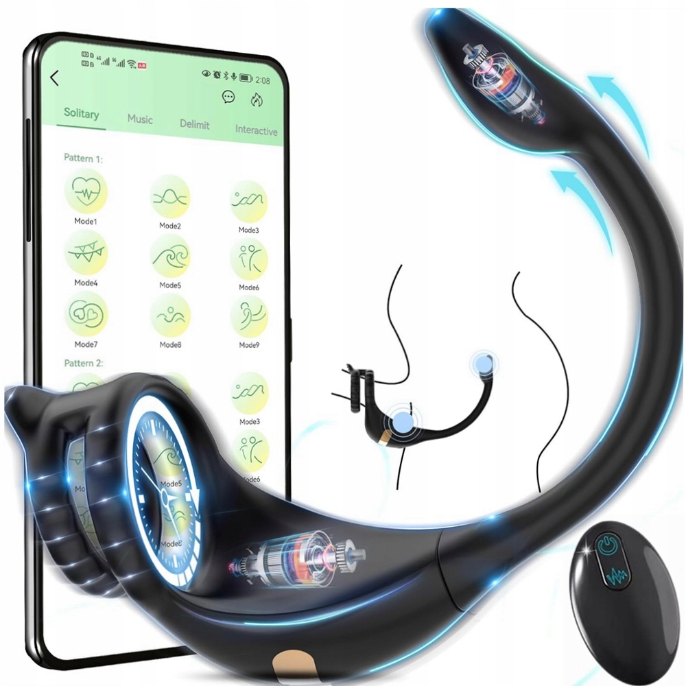 MASAŻER PROSTATY KOREK ANALNY PIERŚCIEŃ NA PENISA Z PILOT I APP 10 FUNKCJI