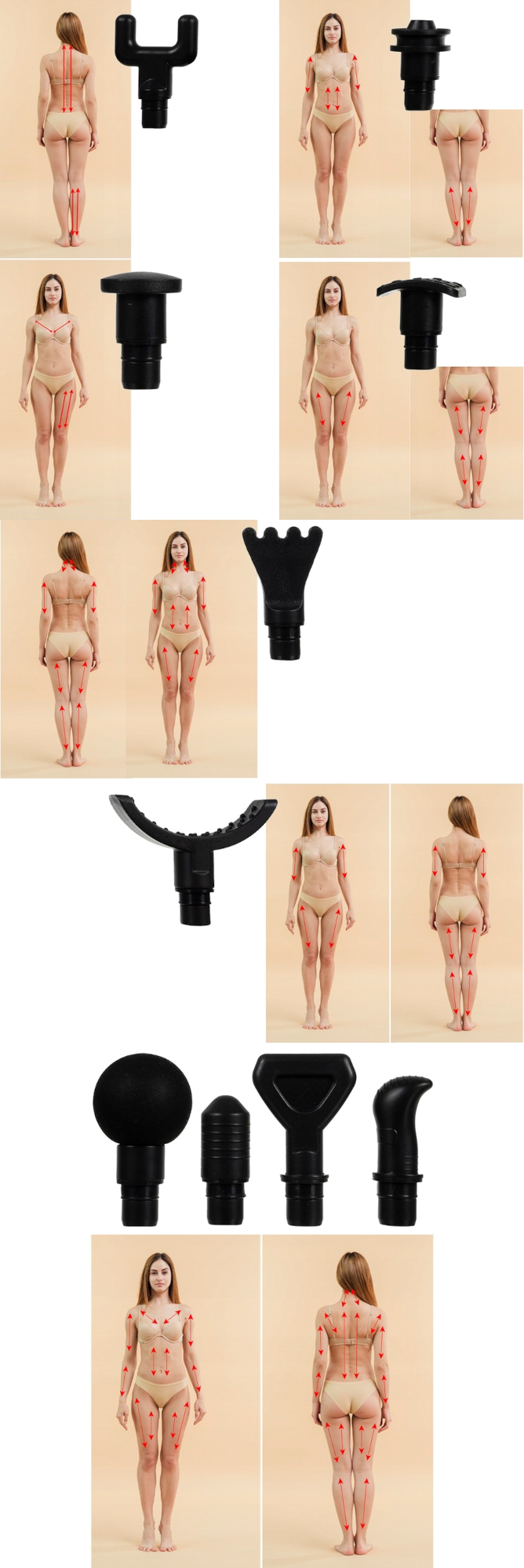 поєднання : голова, призначена для масажу шиї, рук, стегон, телят, живота. плечі, які він призначений для масажу всіх частин тіла та для поверхневої роботи з помірною інтенсивністю.