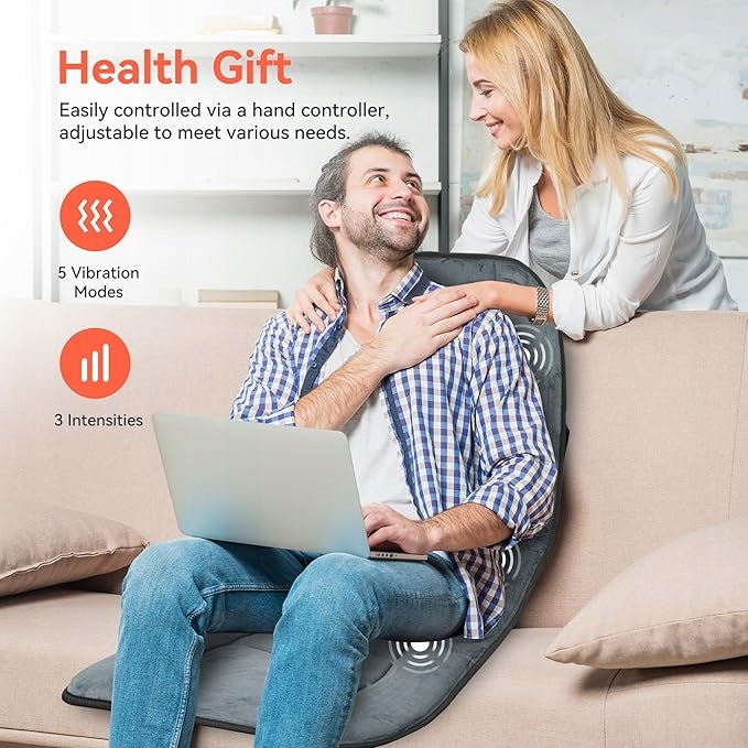 - Персоналізований вібраційний масаж: Масажер задньої частини Купуло з теплом був розроблений з 3 чіткими рівнями інтенсивності та 5 унікальних режимів масажу, забезпечуючи широкий спектр комбінації. Масажний майданчик дозволяє повністю персоналізувати масажний досвід, адаптований до конкретних вимог та рівнів комфорту кожного окремого користувача. Масажні прокладки стільців забезпечують втішне тепло, яке заспокоює м’язові болі. Безпека забезпечується завдяки системі захисту від перегріву та 30-хвилинному автоматичному вимкненому масажуванню нагрітому масажуванню. Ця комбінація значно знімає м’язовий тон. Це унікальний вибір для подарунка для всіх. Завдяки гнучкому, складеному дизайну, ви можете насолоджуватися адаптованим масажу в ліжку, на підлозі або сидячи на дивані, дивані, крісло або стільці, як зручний. Це ідеальний подарунок для матері, тато, її, її чи когось, кого ви цінуєте.