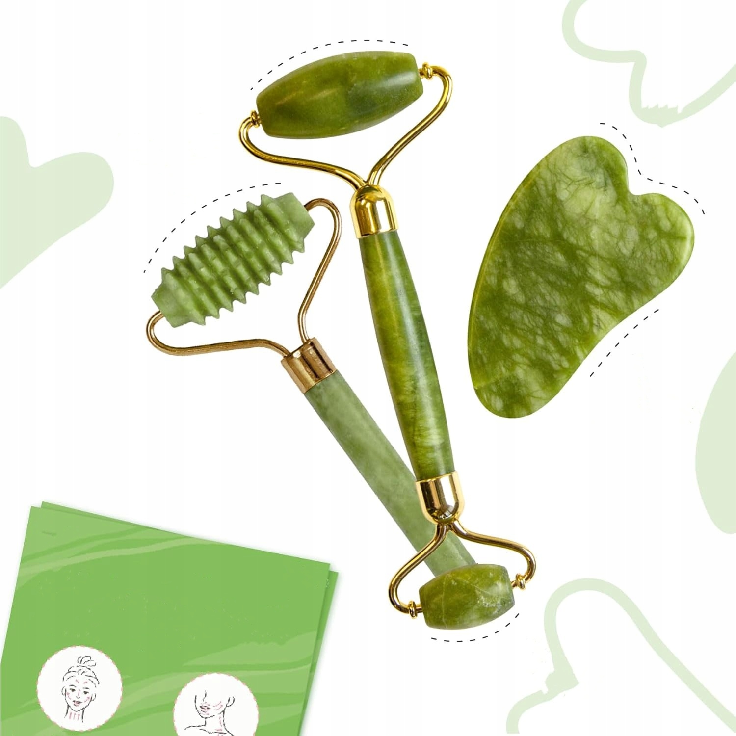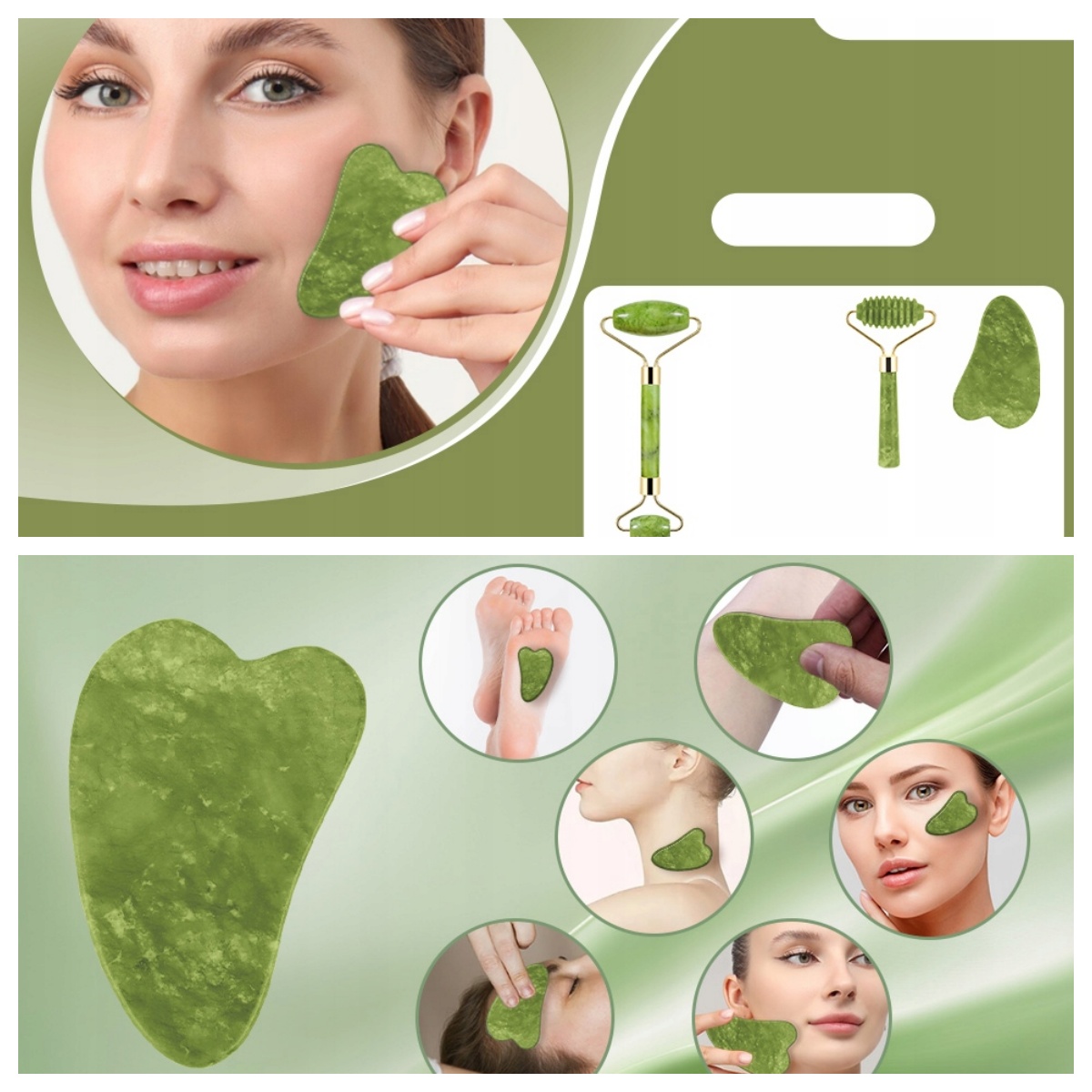 Масажер для обличчя 3в1 GUA SHA STONE з жадеїтовим роликовим набором масажний ролик