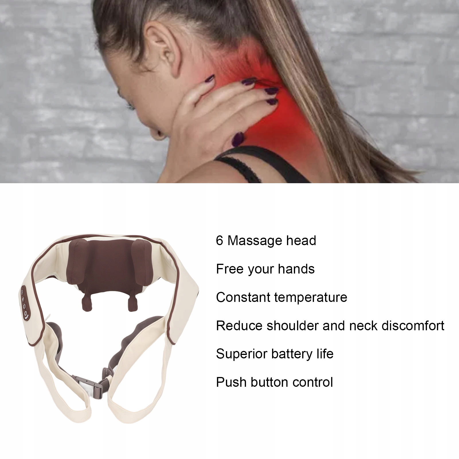5. Портативний дизайн руки: унікальний дизайн у формі шалі дозволяє зручно використовувати будь-де, будь-де, легко носити, забезпечуючи комфортний масаж у дорозі.
