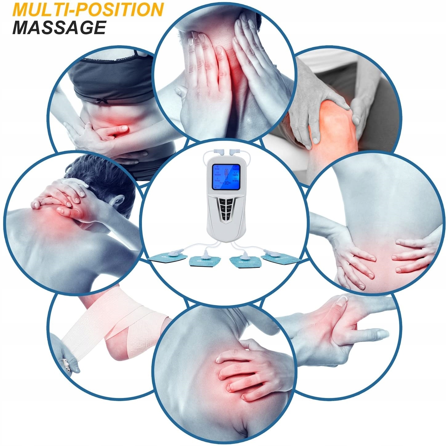 Масаж окремих частин тіла та стоп, електростимуляція за допомогою електродів, правильне застосування масажу з точки зору техніки, інтенсивності та інтенсивності