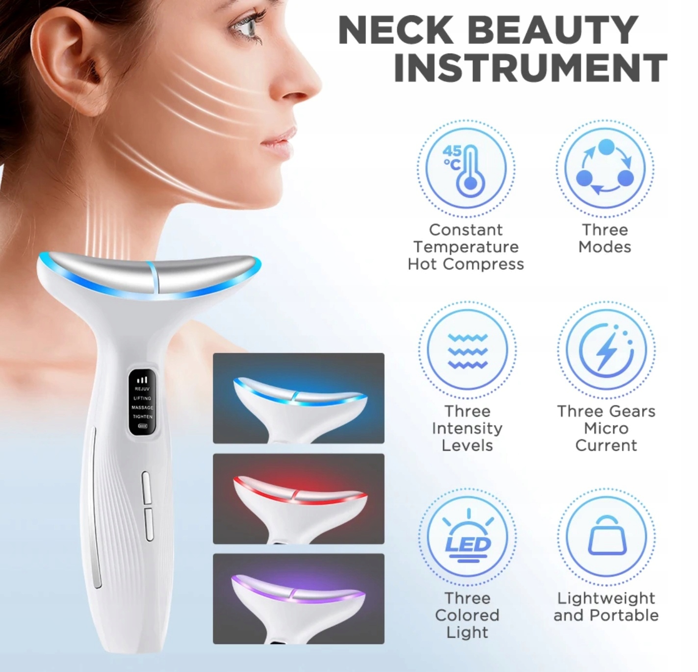МАСАЖЕР ДЛЯ ЗМІЦНЕННЯ ШИЇ ТА ОБЛИЧЧЯ EMS LIFTING LED ВІБРАЦІЯ ГАРЯЧИЙ КОМПРЕС !