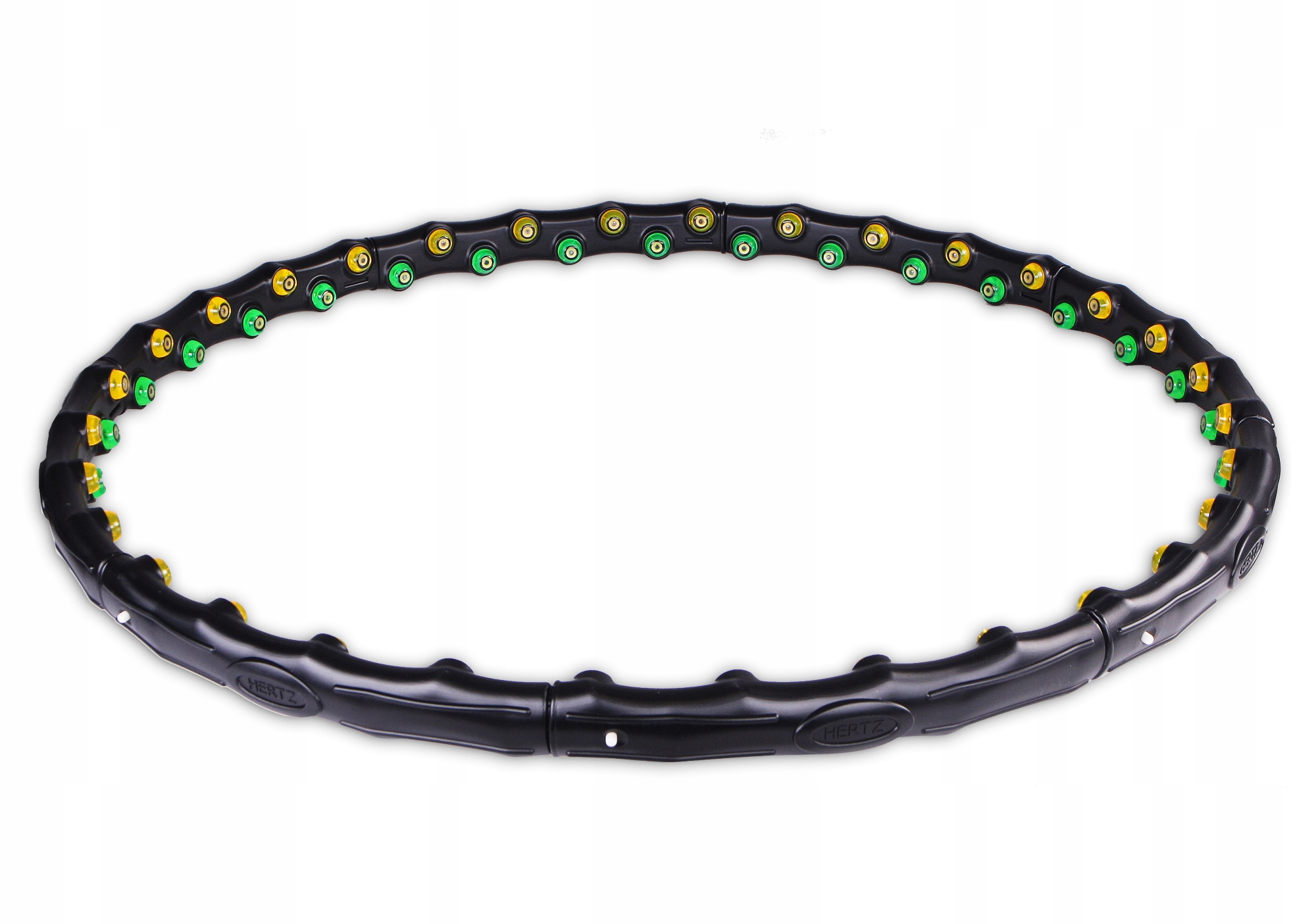 ☑️ Цей обруч важчий, ніж стандартний хулахуп, який змушує м’язи працювати інтенсивніше, а отже, дає набагато кращі результати схуднення. Hula Hoop оснащений спеціальними кульками з терапевтичним карбоновим магнітом, які масажують м'язи та розщеплюють жирову тканину під час занять.