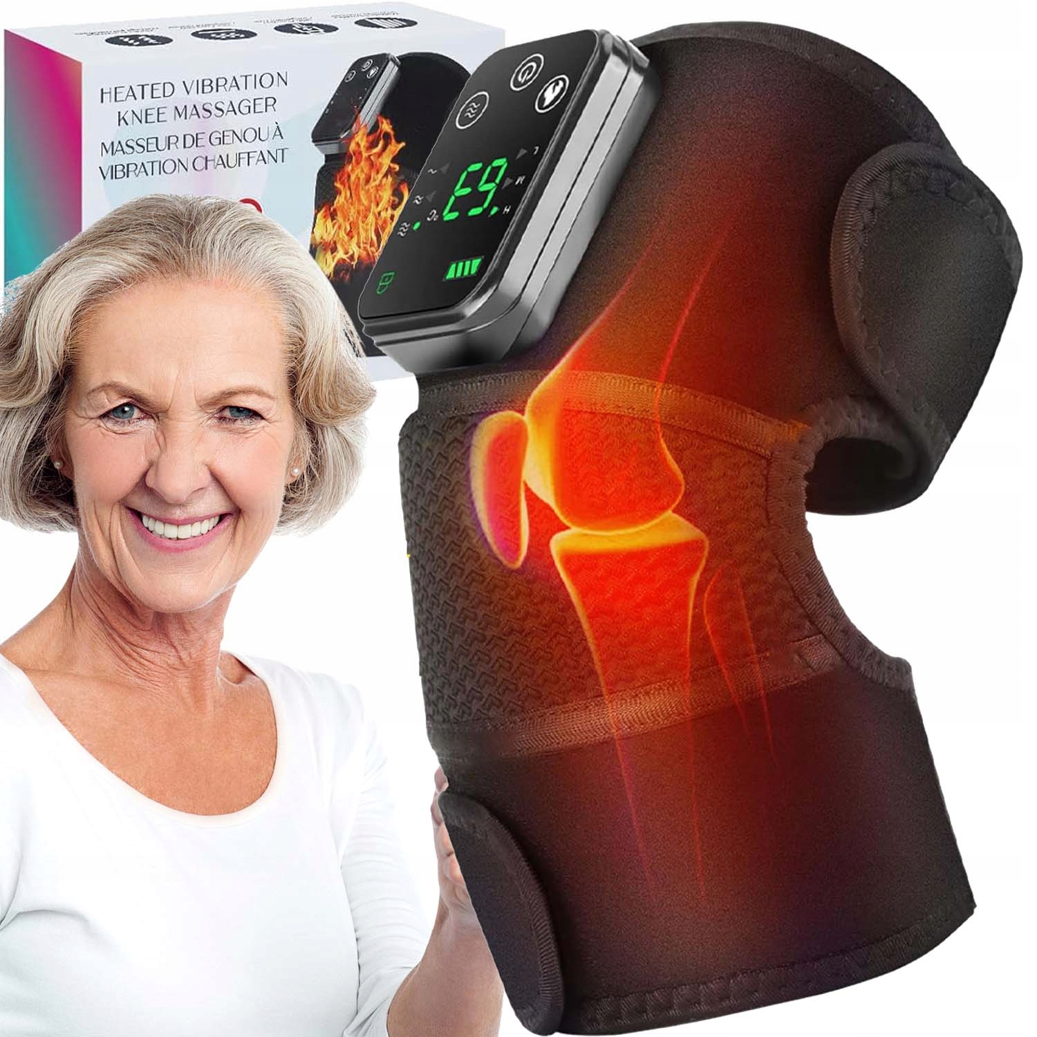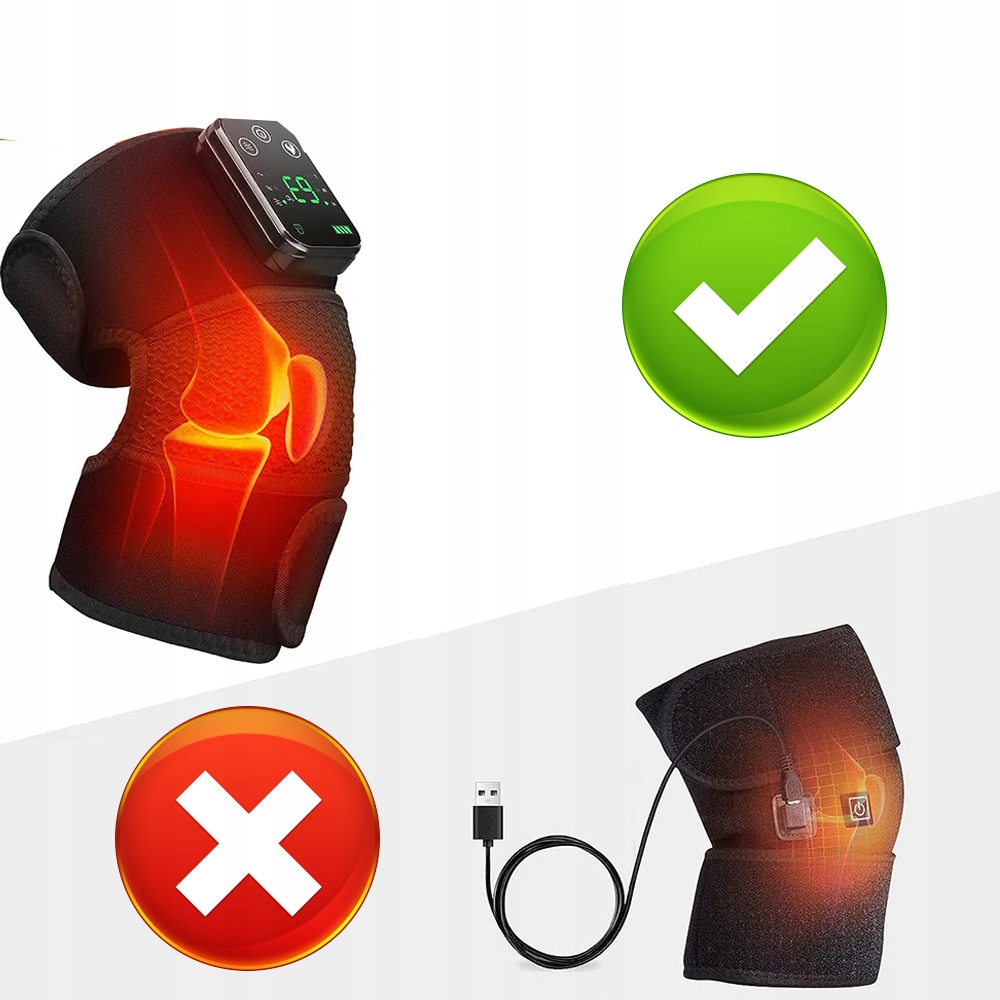 🔥 【Бездротовий масажер】: на відміну від традиційних дротових наколінників, бездротовий контролер може вільно рухатися, тож ваші дії більше не обмежуються роз’ємом для зарядки та уникають заплутаних кабелів. Цей наколінник із підігрівом забезпечує миттєвий нагрів, подвійні двигуни для глибокої вібрації та режим захисту від дотику, який розслабляє коліна, плечі та лікті.