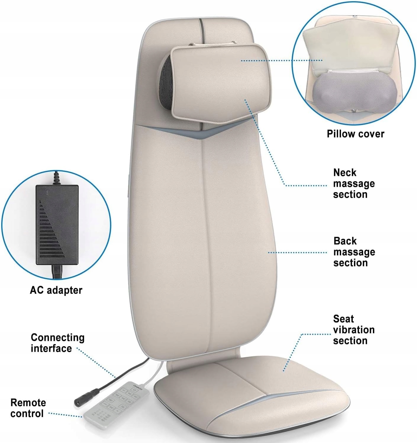 Масажер для спини з нагріванням - Масаж шиацу з додатковою функцією нагрівання додає м’яке тепло для полегшення м’язового дискомфорту. 3 зони масажу спини на вибір: повна спина, верх спини та поперек. Точкова функція дозволяє зосередити вузли розминання на певних ділянках для точного розслаблення. Заспокойте свої м’язи