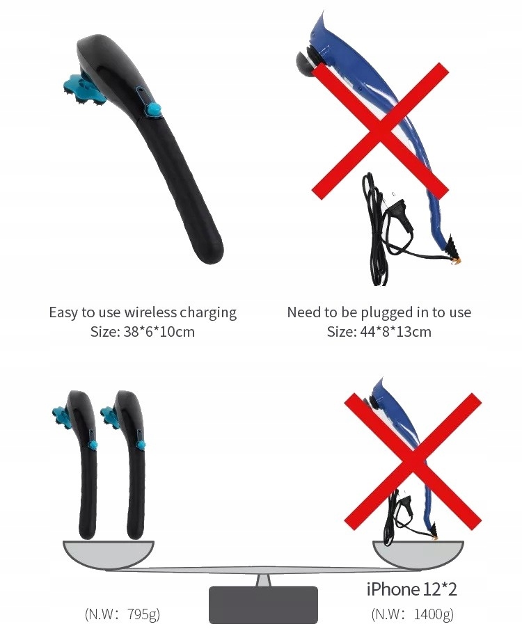 Переваги: Дуже зручна довга ручка Простий у використанні, естетичний вигляд Змінні масажні наконечники Можна використовувати на будь-якій частині тіла - масаж і розслаблення