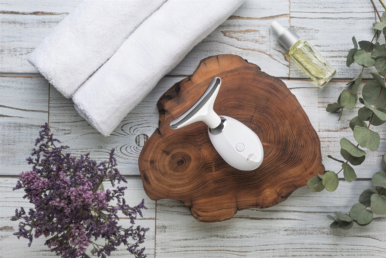 Масажер для шиї та обличчя з технологією червоного світла, теплотерапії та гальванотерапії.
