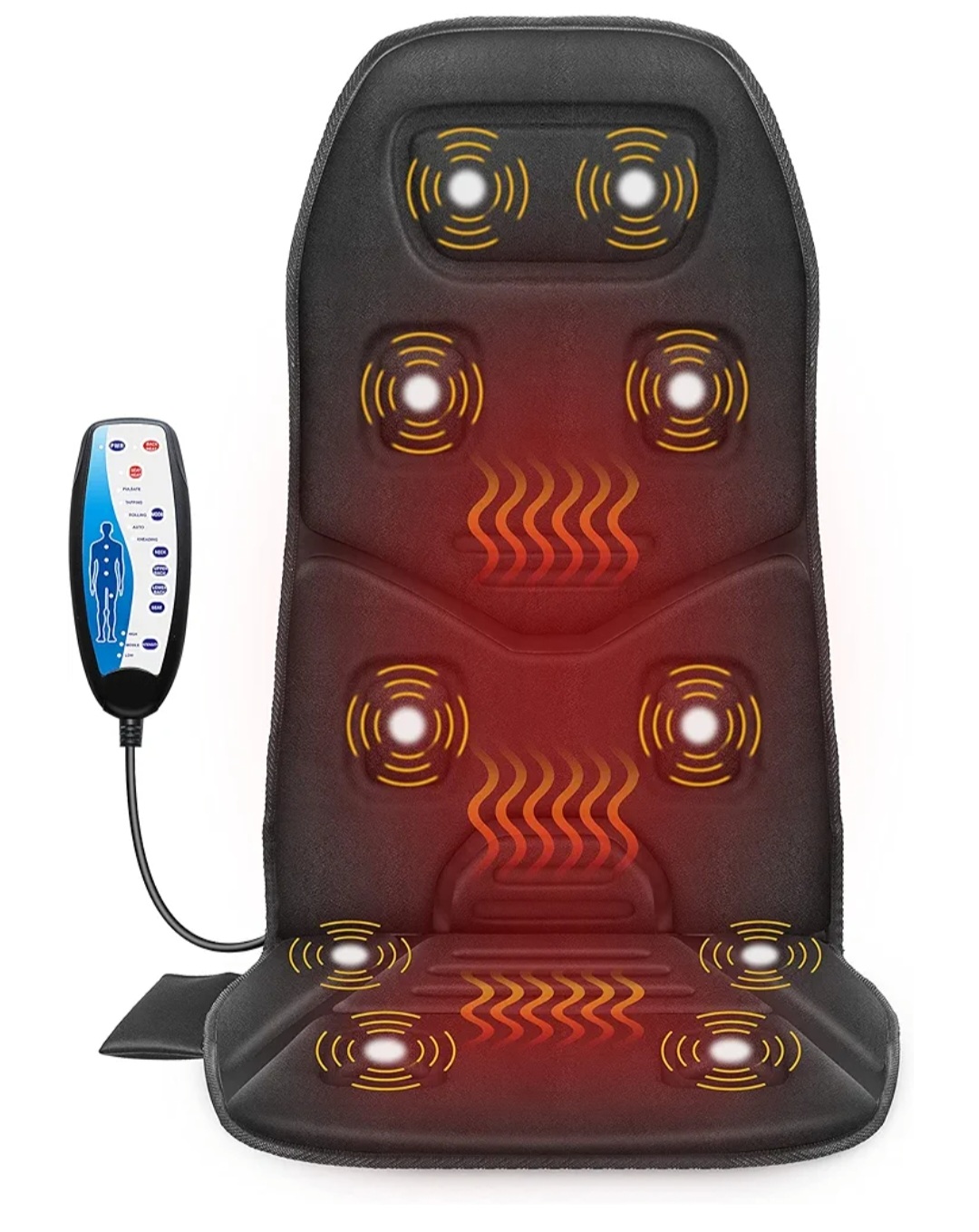 Вібраційний масаж, не шиацу, це лише масажер вібраційний, а не масажер шиацу з роликами. Накладка на масажне крісло з 10 вібраційними двигунами та функцією підігріву забезпечує заспокійливий, ніжний масаж спини та стегон для зняття стресу, напруги та болю в м’язах.