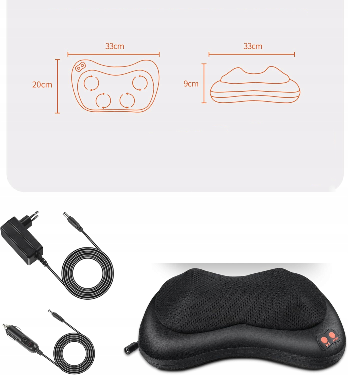 У комплект входить блок живлення та автомобільний адаптер. Незалежно від того, чи берете ви обідню перерву, відпочиваєте вдома чи їдете на довгій машині, ця масажна подушка забезпечить вам масаж як приватний масажист вашої родини в будь-який час і в будь-якому місці. Компаньйон для здоров’я, який позбавить вас від втоми.