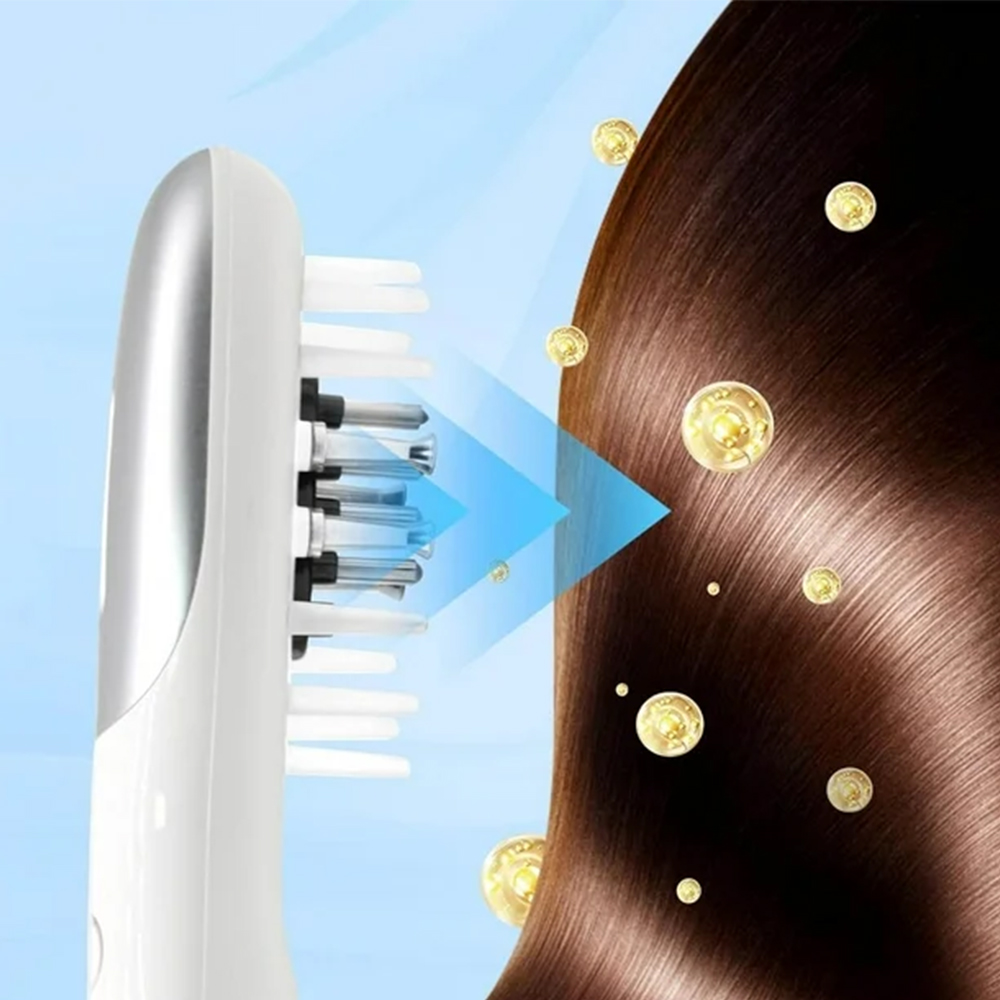 - Електрична щітка масажу волосся оснащена зубами, що замикають перламутами, зуби для лікування червоного світла та зубів для мікро -ди. Він поєднує в собі нанесення масла для волосся, вібруючий масаж з червоним світлом та EMS в одному пристрої.