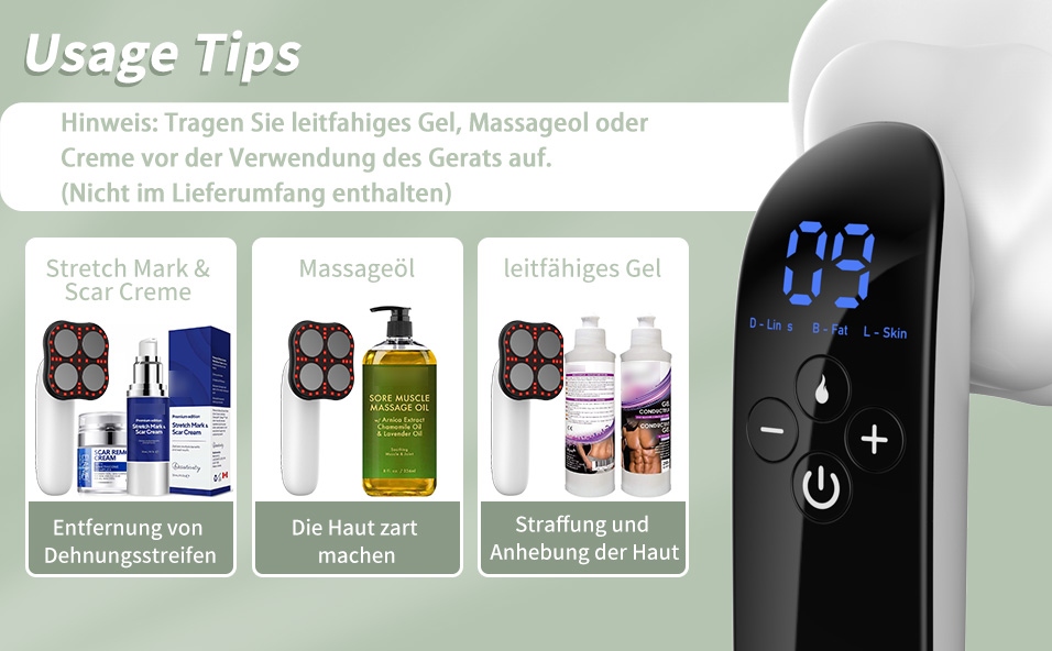 - Пристрій для видалення розтяжок - використовуйте крем від розтяжок - цей пристрій допоможе освітлити розтяжки, шрами та тонкі зморшки, надаючи шкірі сяйво та пружність.
