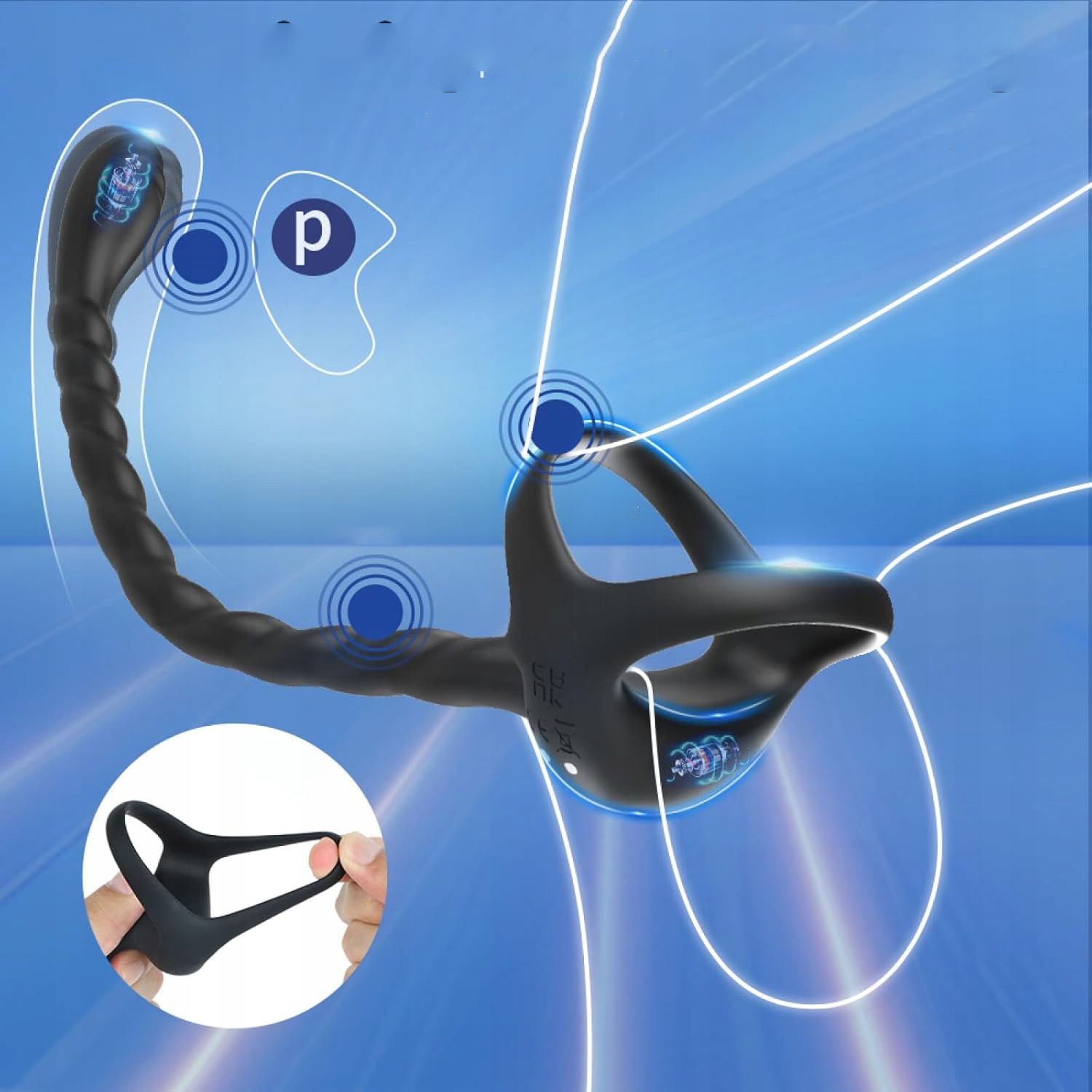 - Вібратор передміхурової залози для чоловіків з'єднує вібраційне кільце з пенісом, стимулятором простати та анальним вібратором. Вібранні кільця на пенісі є гнучкими, завдяки якому задоволення триває довше і збільшує хвилювання. Вібруюча анальна пробка плавно ковзає. Це також може стимулювати промежину для посилення сексуального хвилювання.