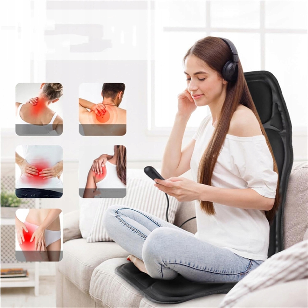 Ця масажна накладка для спини використовує 7 потужних вібраційних двигунів, які глибоко проникають у спину та стегна, забезпечуючи заспокійливий вібраційний масаж, який знімає стрес і втому під час щоденної роботи та тривалих подорожей.