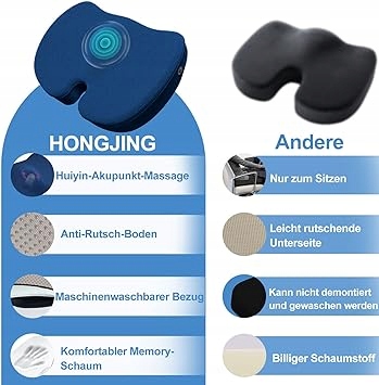 - Унікальний дизайн: масажна подушка HONGJING забезпечує оптимальне сидіння та полегшує біль у куприку. Він не тільки забезпечує м’який досвід, але також має точки точкового масажу, 10 додаткових режимів масажу та 3 інтенсивності масажу для безпечного й ефективного полегшення болю в куприку.