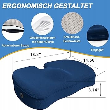 - Підходить до всіх стільців: наші подушки для стільців є ідеальним доповненням до вашого робочого простору. Великий розмір (46,5 x 35 x 9 см) підходить для будь-якого типу крісла, наприклад офісного крісла, ігрового крісла, інвалідного крісла, комп’ютерного крісла або автомобільного крісла. Зробіть своє сидіння зручнішим, додавши нашу подушку до свого крісла зараз.