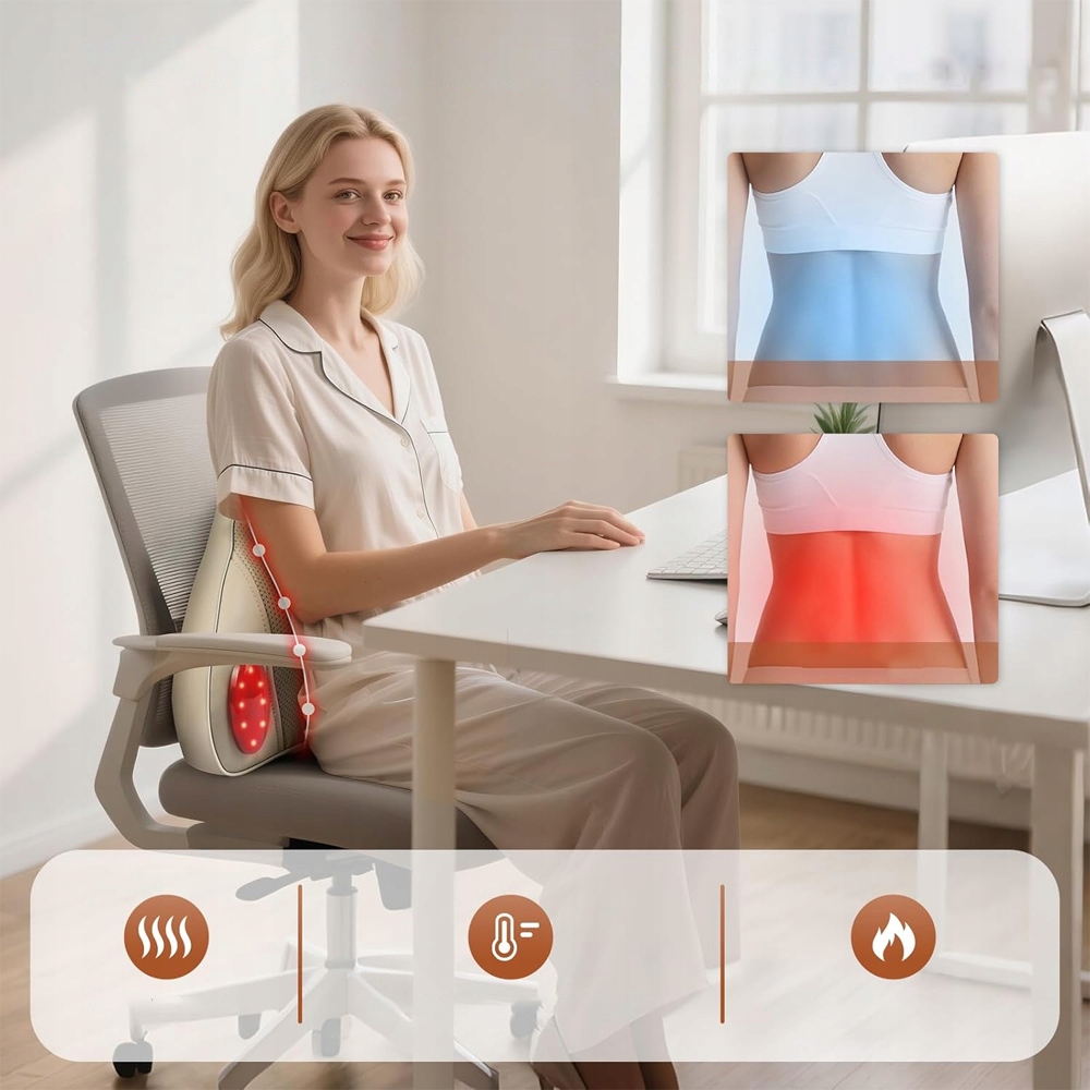 Терапія червоним світлом і теплом: 🌡️ Масажер випромінює заспокійливе тепло, яке досягає 4 ключових точок акупунктури. Дві регульовані температури (40°C/45°C) забезпечують ідеальне прилягання.