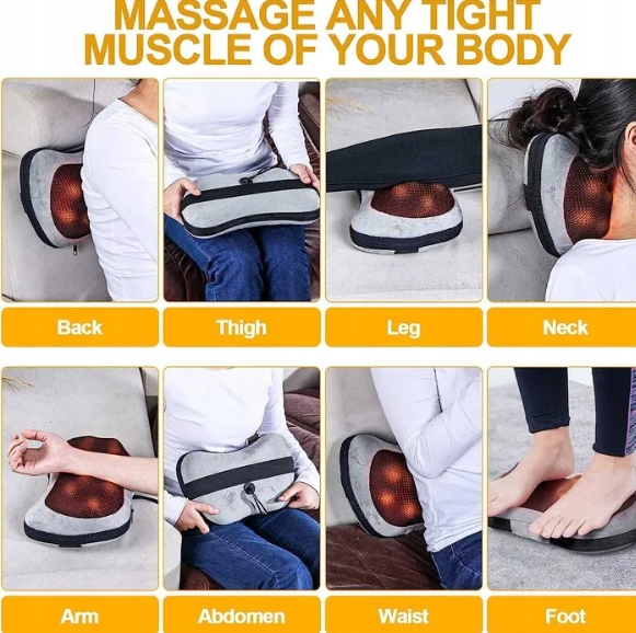 Ергономічний і компактний дизайн масажера для спини добре адаптується до контурів шиї та тіла нижньої та верхньої частини спини, живота, литок і стегон. Масажна подушка для шиї може вразити чутливі зони. Насолоджуйтесь комфортним масажем тіла вдома чи в офісі та відчуйте глибоке розслаблення!