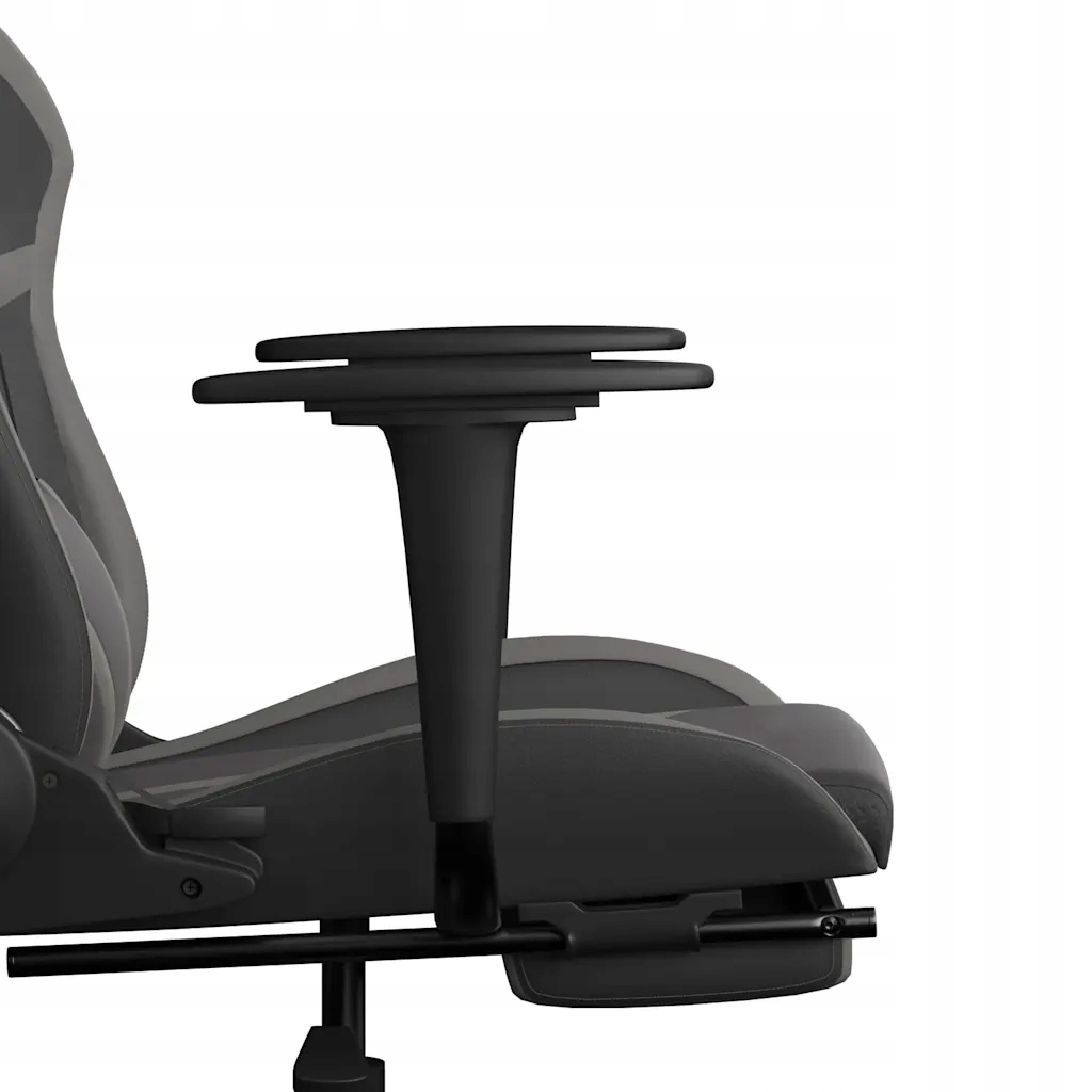 Масажне ігрове крісло з підставкою для ніг, чорно-сіре
