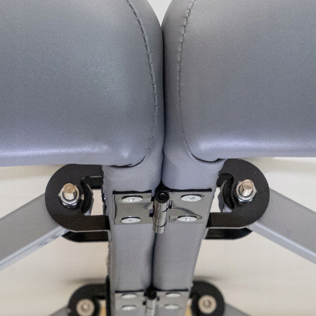 Стіл оснащений зручною стільницею товщиною 5 см з високогнучкої піни. Він також має передній підлокітник. Безпеку під час роботи та комфорт терапевта забезпечують закруглені кути. Міцну, стійку оббивку легко чистити.