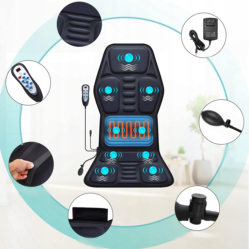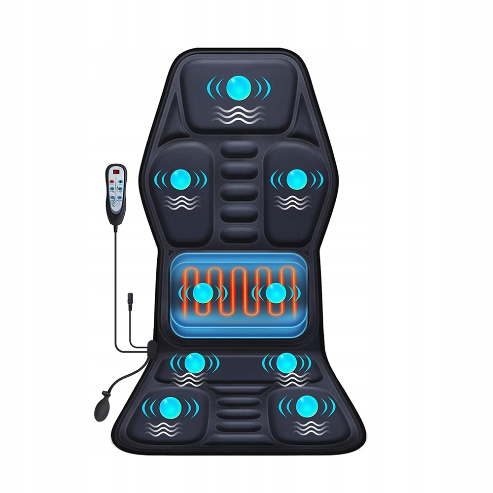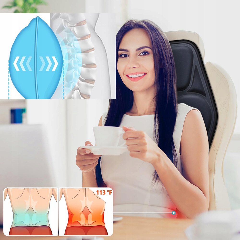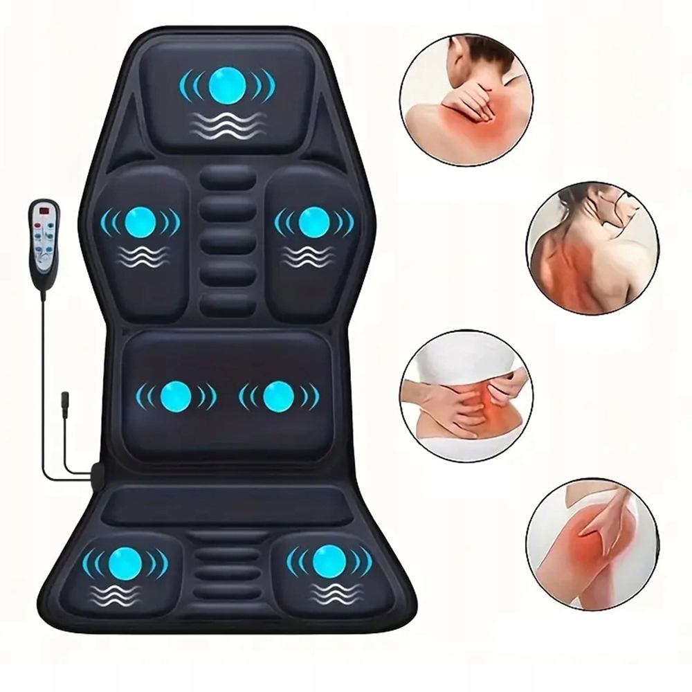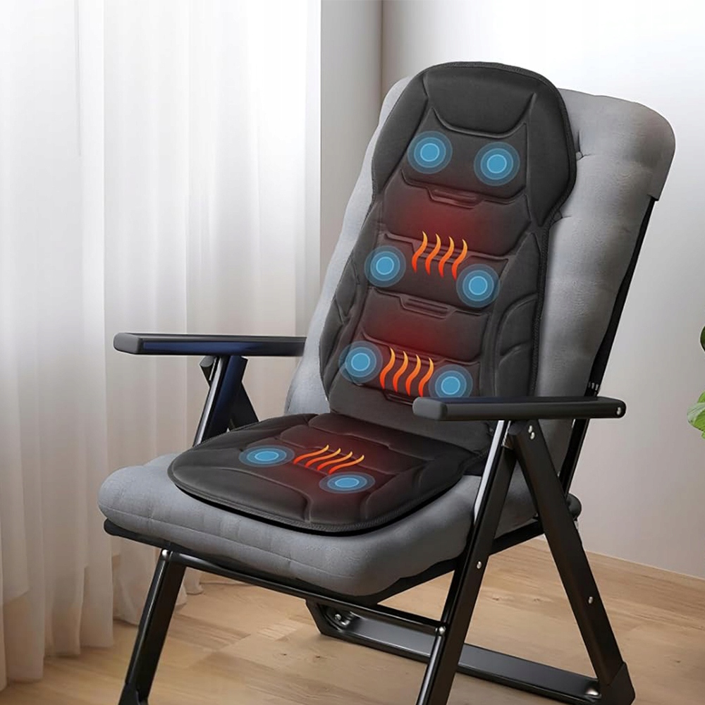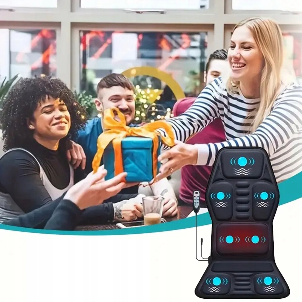 Масажер для спини, оснащений 7 масажними двигунами, функцією підігріву та підтримкою попереку, забезпечує заспокійливу, м’який масаж шиї, спини та стегон, що допомагає зняти втому, стрес, напругу та м’язовий біль.