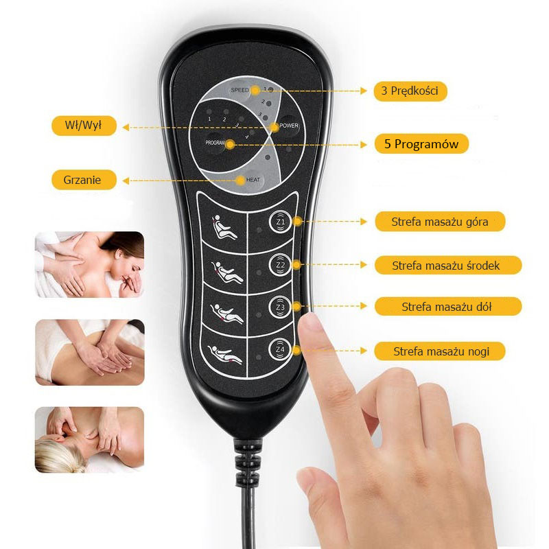 Масажна зона дуже велика, включаючи шию, спину, всю поперекову зону та стегна.