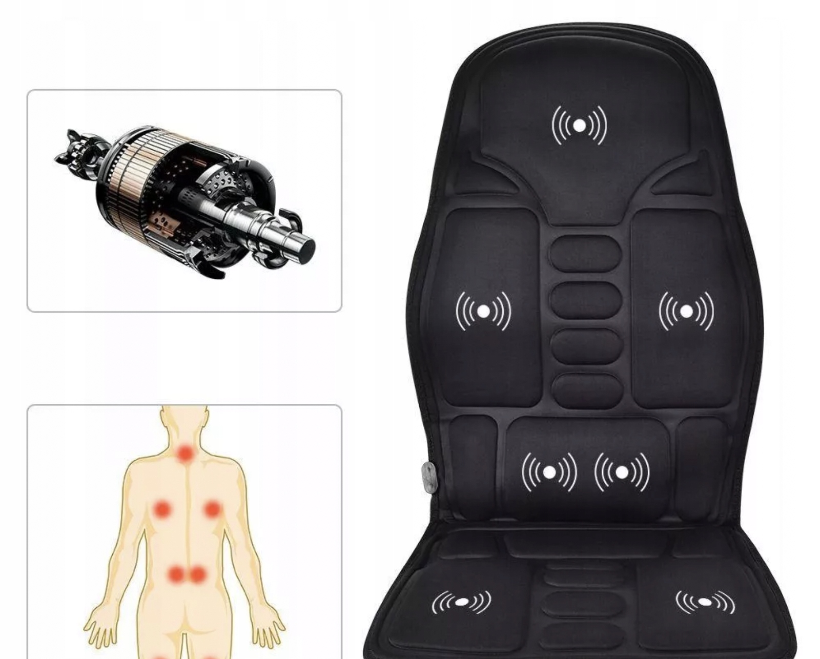 Це масажне сидіння оснащене 10 вібраційними двигунами , які забезпечують делікатний і заспокійливий масаж для спини, стегна та нижньої частини спини. Це допомагає полегшити стрес, напругу м’язів та біль, забезпечення комфорту та полегшення.