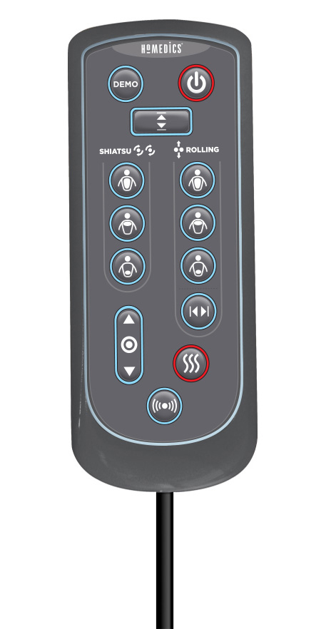 - цілих 14 різних масажних функцій: - верх, низ або вся спина в шиацу і руховий масаж і точковий масаж шиацу, вібраційний масаж, демонстраційна програма, регулювання ширини проміжку роликів, підігрів , самостійний вибір зони масажу