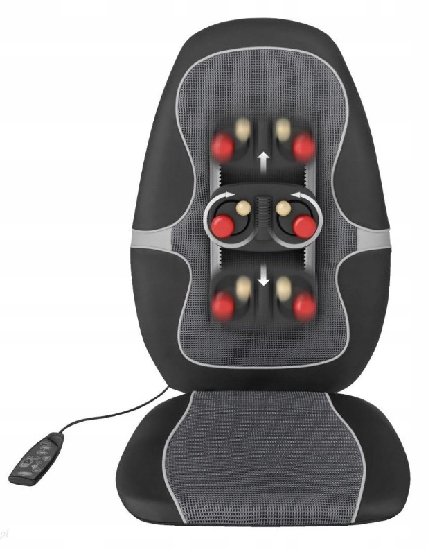 - Чотири обертові масажні головки є ідеальним масажем шиацу та ідеальним рішенням для певних частин тіла: спини, верхньої/нижньої частини спини. Додаткова функція ввімкнення інфрачервоного тепла додатково робить масаж більш ефективним і підтримує ефект.