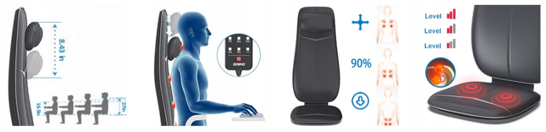 Відчуйте індивідуальниймасаж шиї та плечей. Килимок має 4 головки, які здійснюють глибокий масаж тканин, а головне - висота масажної подушки для шиї повністю регулюється. Завдяки цьому пристрій адаптується до росту кожного члена сім’ї, забезпечуючи точне та ефективне звільнення від напруги.