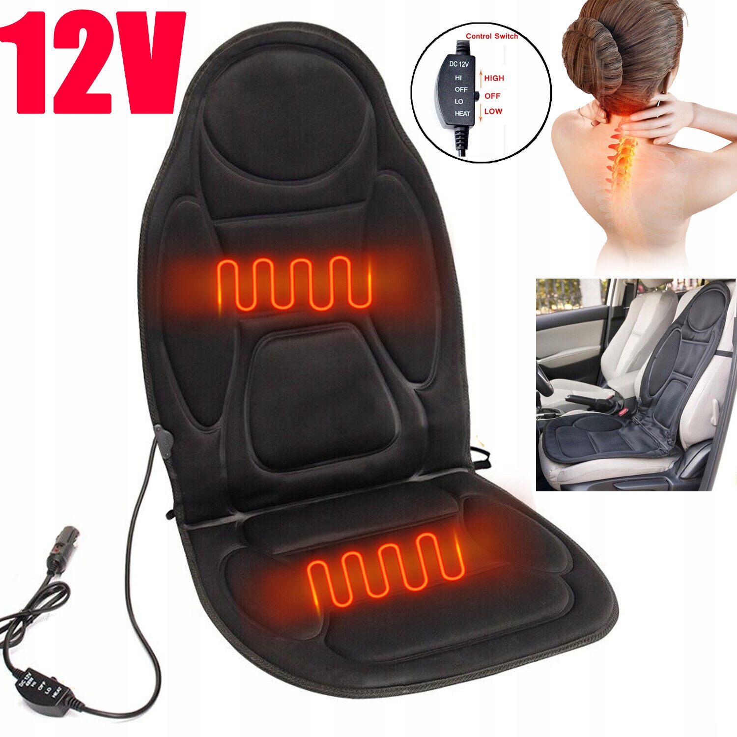 МАСАЖНИЙ КИЛИМОК З ПІДІГРІВОМ МАСАЖУ ДЛЯ СИДІННЯ З ПУЛЬТОМ ДЛЯ АВТОМОБІЛЯ І ДОМУ 12V