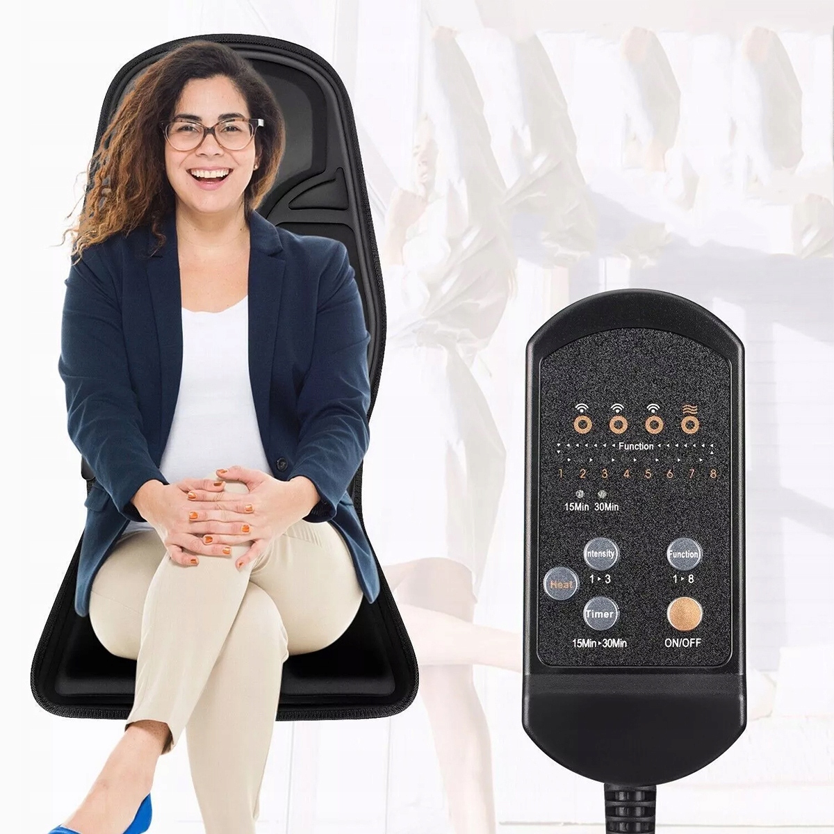 Надзвичайно практичний і функціональний масажний килимок для використання вдома, в офісі або в автомобілі. Якщо ви хочете розслабитися після важкого робочого дня, цей килимок для вас. Зручно влаштуйтеся в улюбленому кріслі під час перегляду телевізора та розслабтеся. Ви проводите 8 годин за робочим столом? Розстеліть на стільці масажний килимок і насолоджуйтесь сеансами масажу, не відриваючись від роботи. Довгі години за кермом більше не будуть страшні, якщо вашим супутником у подорожі стане килимок, який не тільки розслабить хворі м’язи, але і зігріє, якщо потрібно. Килимок має кілька програм і рівнів інтенсивності, тому кожен зможе підібрати для себе потрібну. Управління здійснюється за допомогою пульта дистанційного керування, а в комплект входить настінний і автомобільний зарядний пристрій.