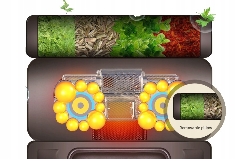 - гнучка і складна масажна подушка з розслаблюючою вставкою для ароматерапії, підігрівом
