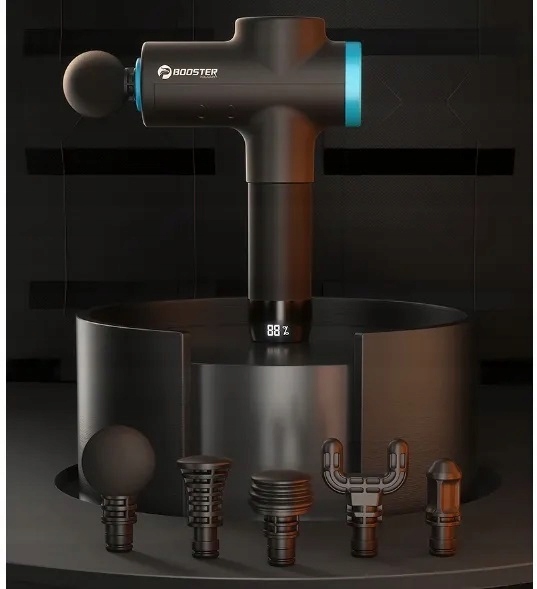 У розпорядженні користувачів шість змінних порад, що дозволяють безпечним та комфортним масажу будь -якої частини тіла, як великі частини, так і індивідуальні точки. Набір включає круглу, плоску вставку, кулю та вилку, що дає широке поле маневру і робить пристрій надзвичайно універсальним. Він упакований у валізу, тож ви можете легко взяти його з собою навіть у довгу подорож або до спортзалу.