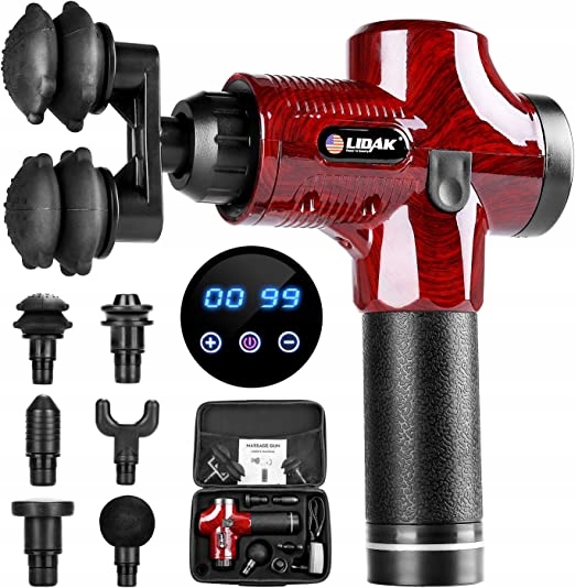 - Масажний пістолет – це фізіотерапевтичний пістолет, який надсилає імпульси тиску, що проникають глибоко (12-18 мм) у м’язову тканину. Він може полегшити ригідність і біль у м’язах, а також підтримує кровообіг і лімфатичну циркуляцію.