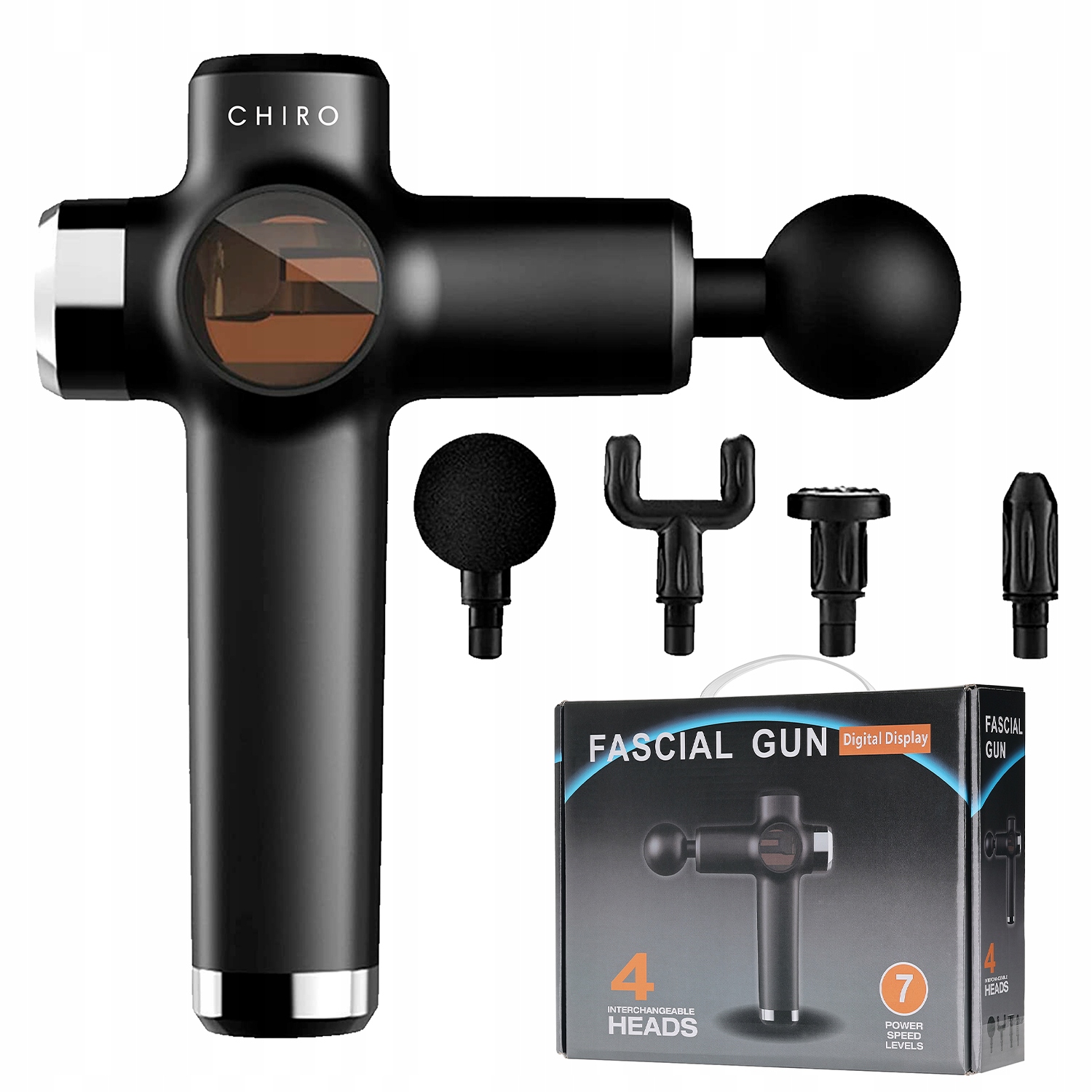 МАСАЖНИЙ ПІСТОЛЕТ ДЛЯ СПИНИ ТІЛА MASSAGE GUN PRO+ НАБІР ГОЛОВОК