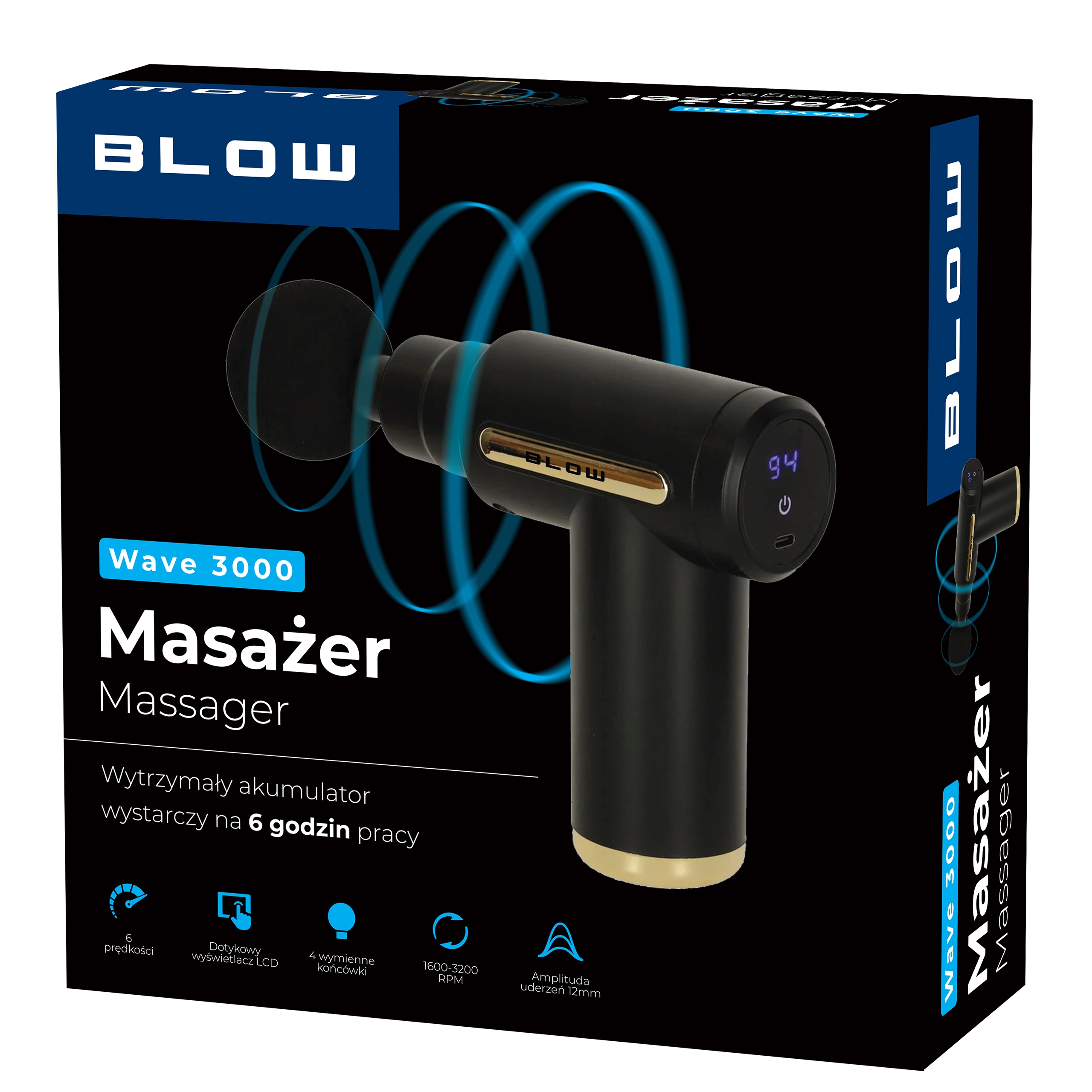 Blow Massager -це багатофункціональний пристрій , який дозволяє зірвати та стимулювати всі групи м’язів . 4 взаємозамінні поради Massager дають можливість позбутися щоденного болю, відновити форму, регенерацію після фізичних вправ, а також de -stress після важкого дня.
