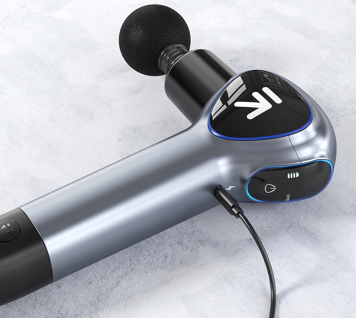 Світлодіодний екран відображає рівень акумулятора та заряду швидкості. 4 масажні голови та 5 рівнів швидкості для задоволення всіх ваших потреб. Ще більше коригуйте свої масажні покази завдяки автоматичному режиму, який швидко перемикається вгору та вниз залежно від тиску.