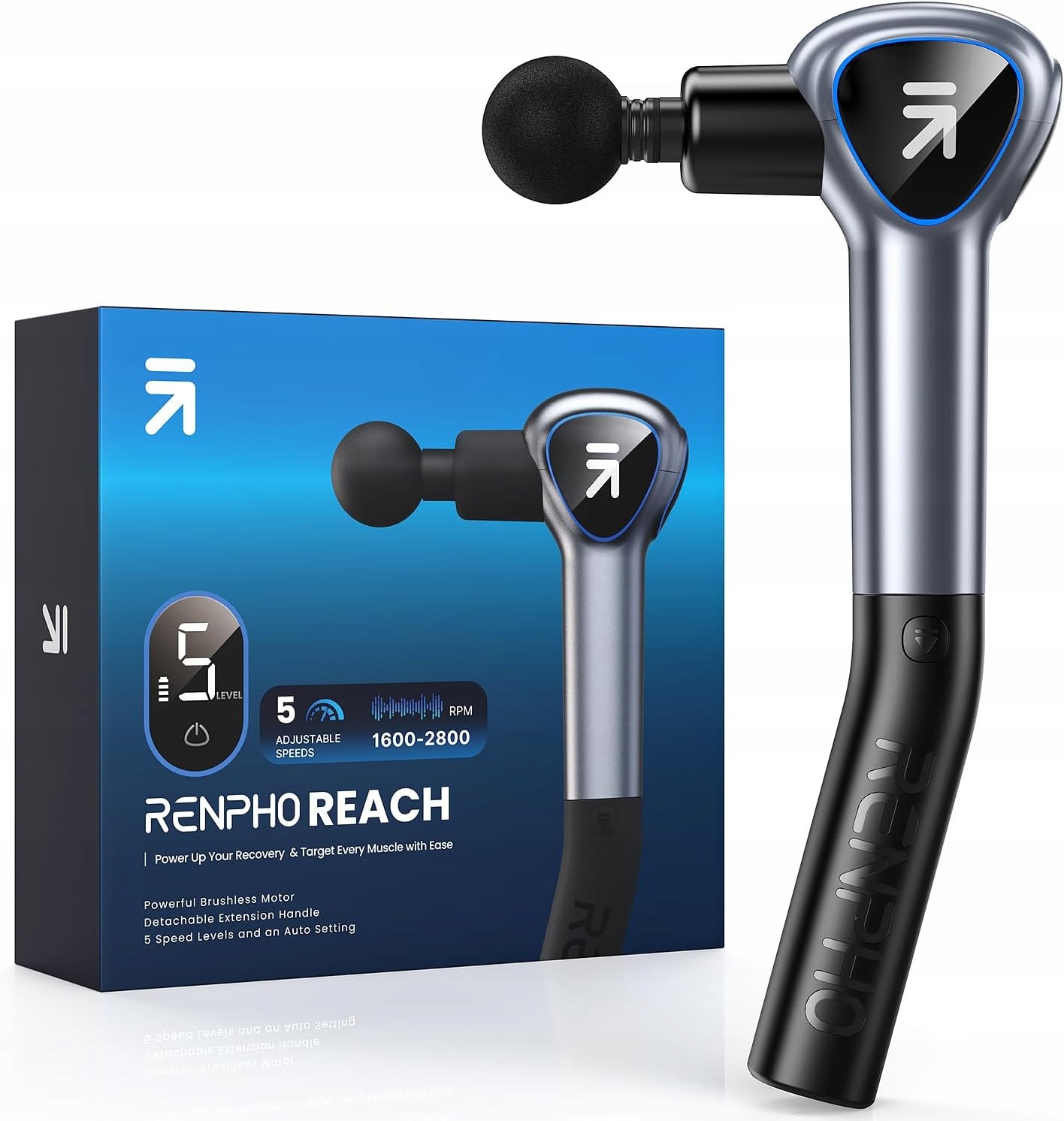 Масажний пістолет із знімною ручкою, пістолет для масажу Renpho з ручкою з розширенням, масажний м’яз пістолета з сенсорним світлодіодним екраном для фізичних вправ у м'язовому масажі всього тіла розслаблення