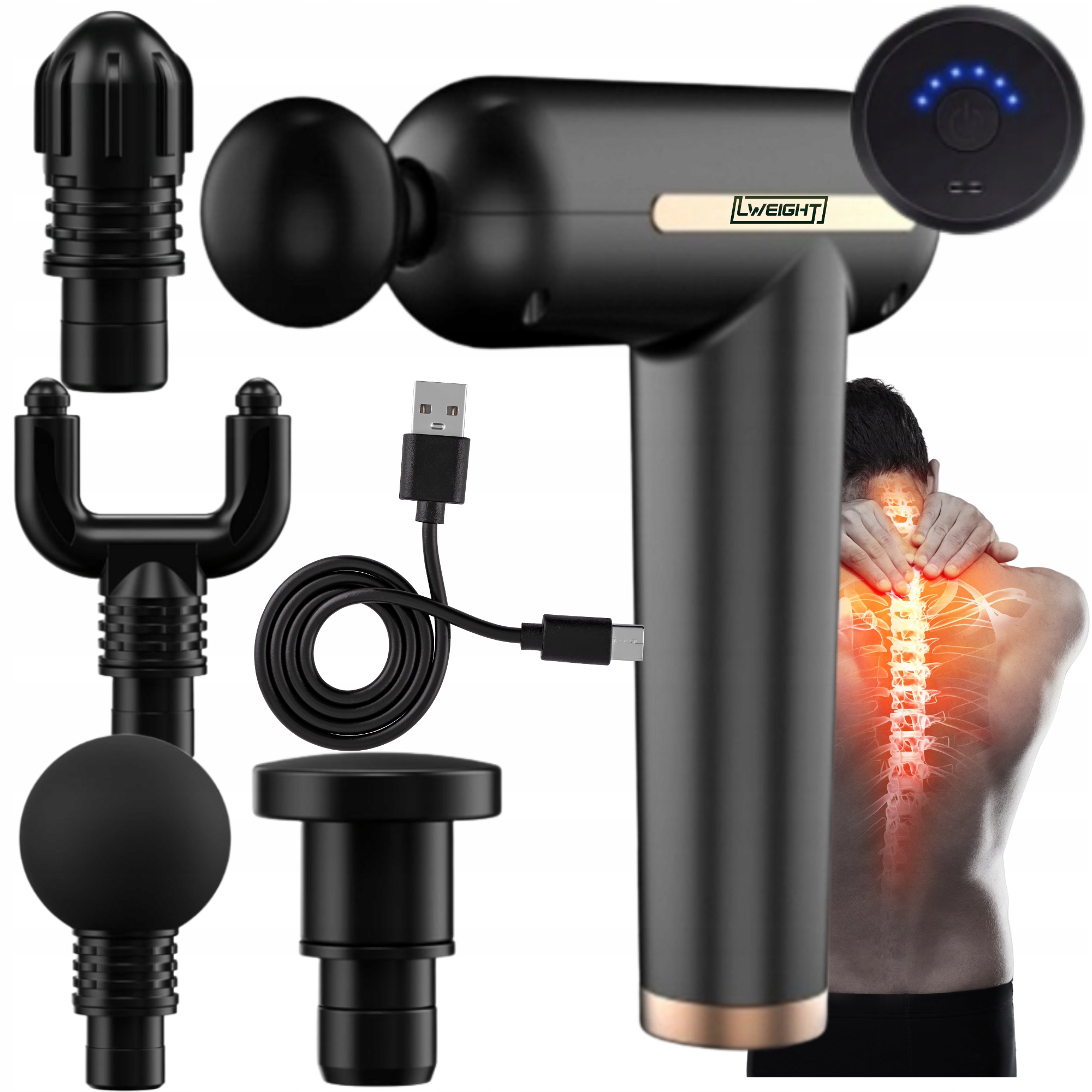 Масажний пістолет оснащений 4 взаємозамінними порадами, розробленими для точної взаємодії на різних м’язових групах та областях тіла. Кожна наконечник має різну мету, яка дозволяє адаптувати інтенсивність та техніку масажу до конкретних потреб, таких як регенерація м’язів, полегшення болю або вдосконалений кровообіг. Заміна порад є інтуїтивно зрозумілою та швидкою, що полегшує персоналізацію масажу залежно від поточних вимог користувача.