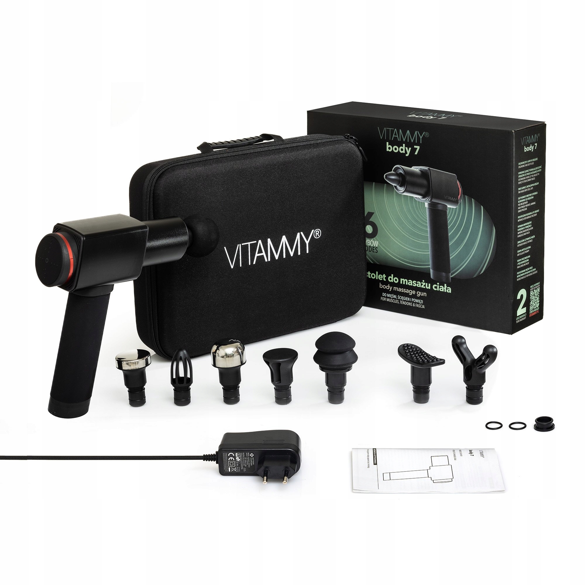 VITAMMY BODY 7 — це інноваційний ручний масажер із найвищими технічними параметрами. Він має до 6 різних режимів роботи, 8 різних масажних головок і до 2 сталевих головок, що забезпечує точну роботу та виняткову потужність і довговічність.