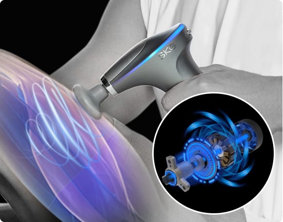 Масажний пістолет SKG F7-EN розроблено з особливою увагою до комфорту та безпеки використання. Тихий безщітковий двигун, посилена алюмінієва конструкція, вбудовані функції безпеки і антивібраційна система роблять пристрій довговічним і надійним. Ручка масажера покрита антиковзаючим шаром, тому він добре тримається в руці під час використання.