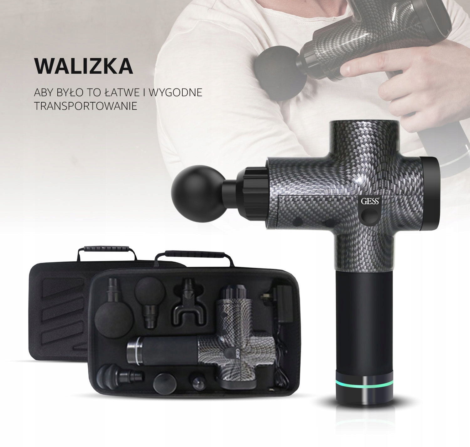 - Легко переносити: масажний апарат Gess Revolver, масажні головки та зарядний пристрій упаковані в зручну валізу, тому ви можете брати з собою з вами будь-де .